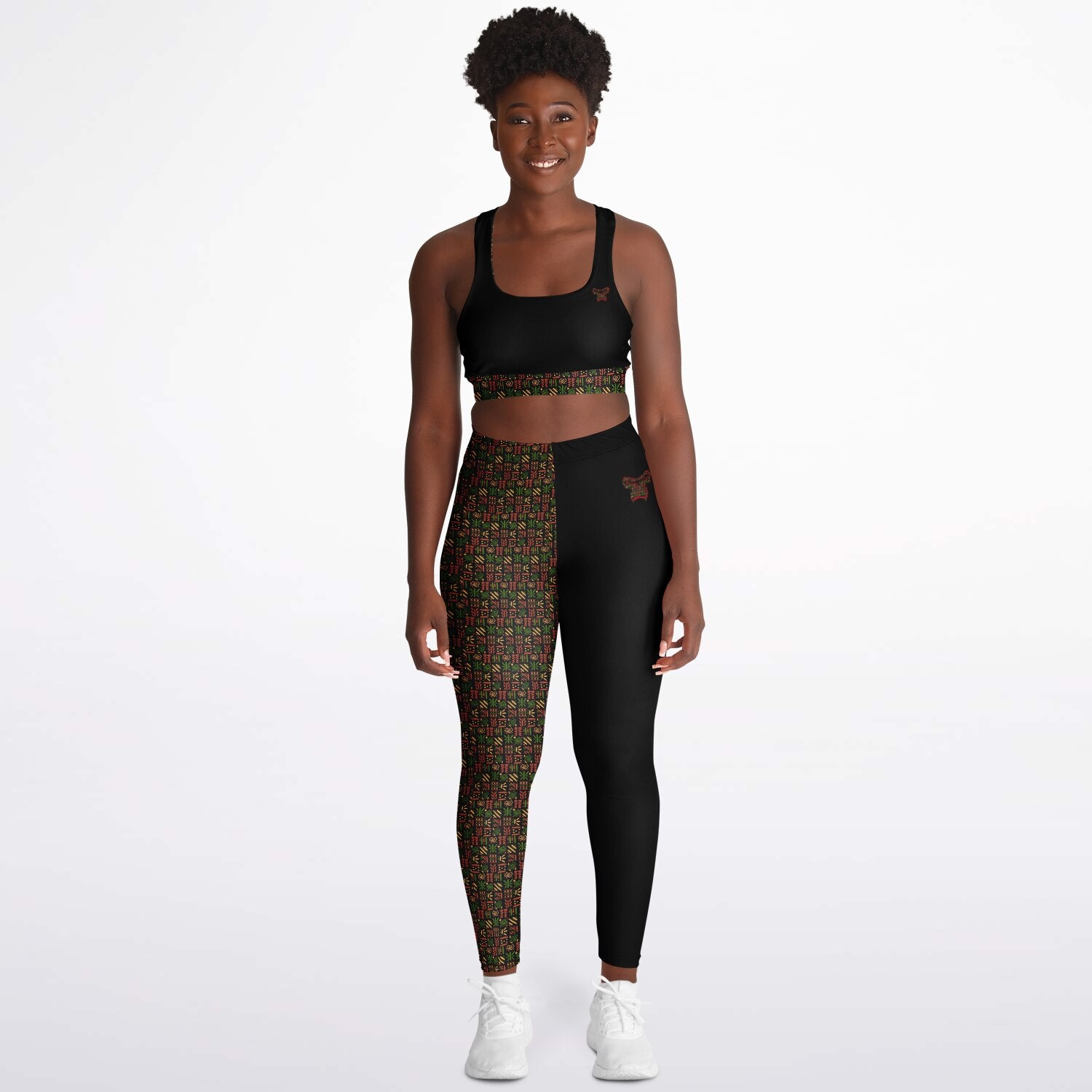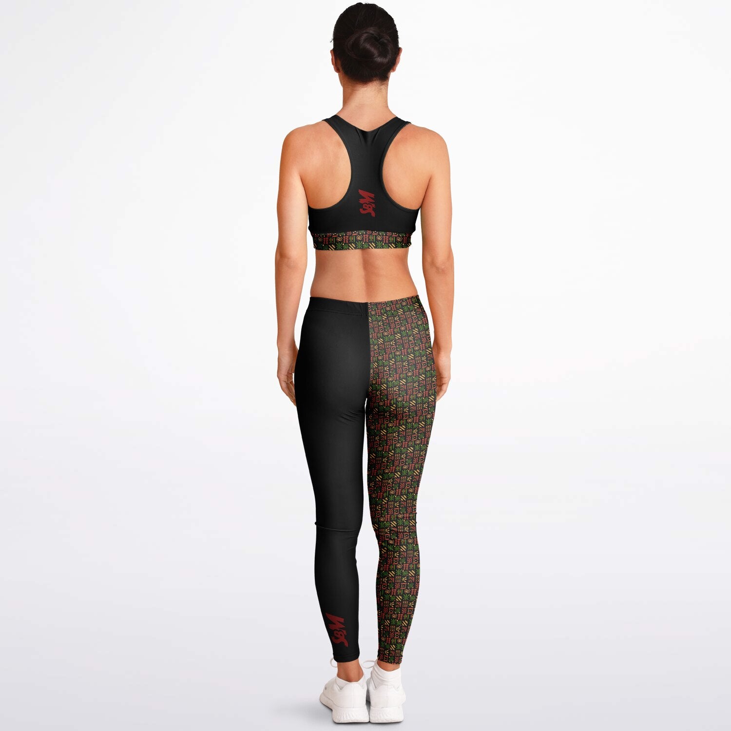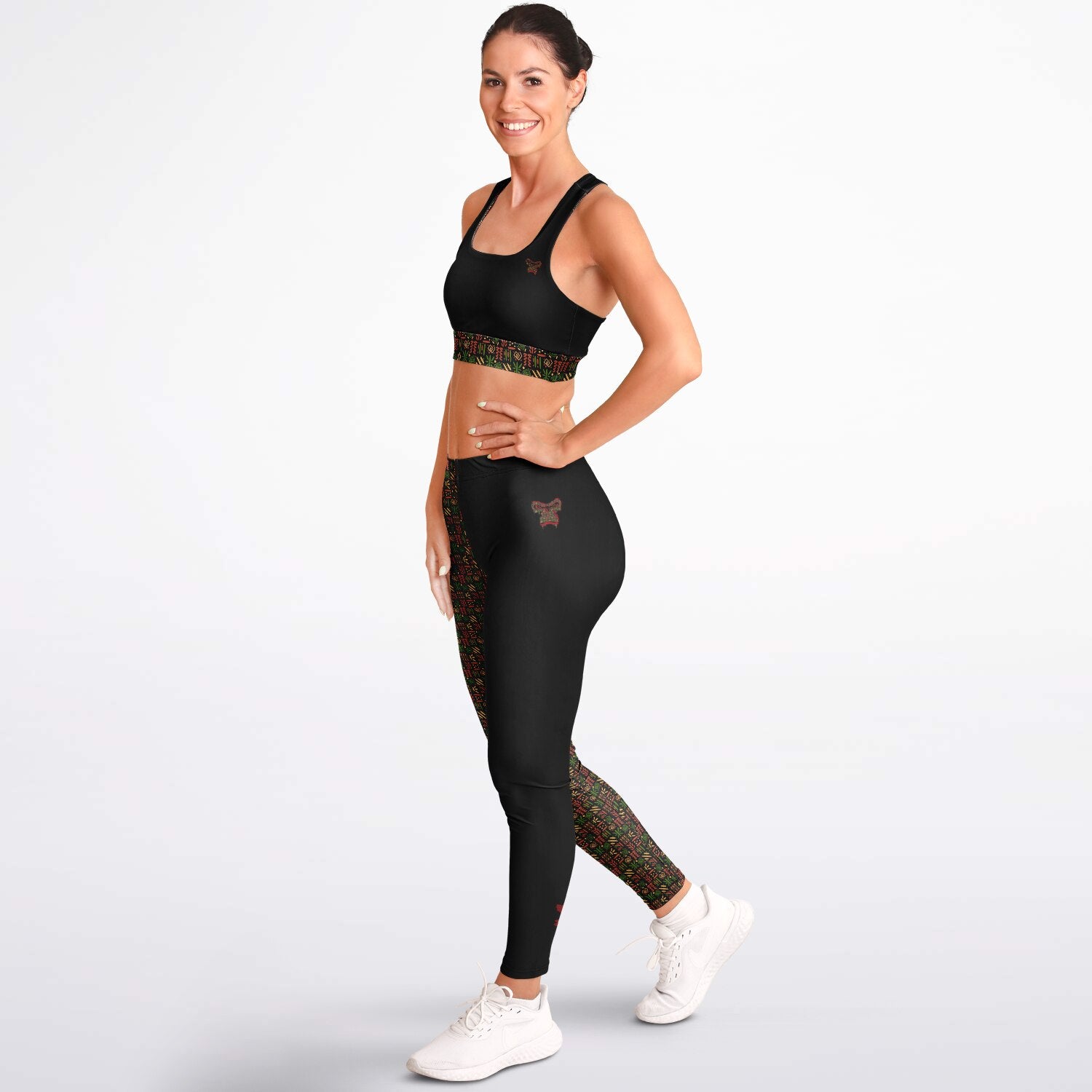 Padded Sports Bra & Leggings - Black & Red African Print