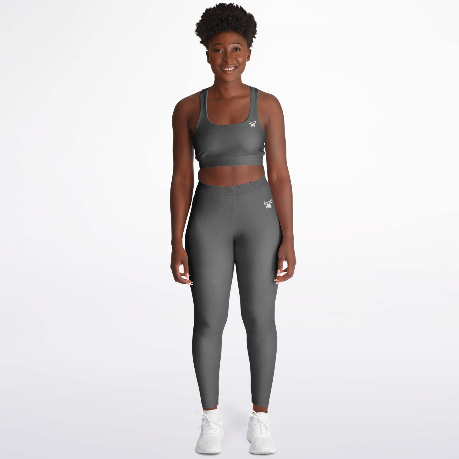 Padded Sports Bra & Leggings - Grey & White