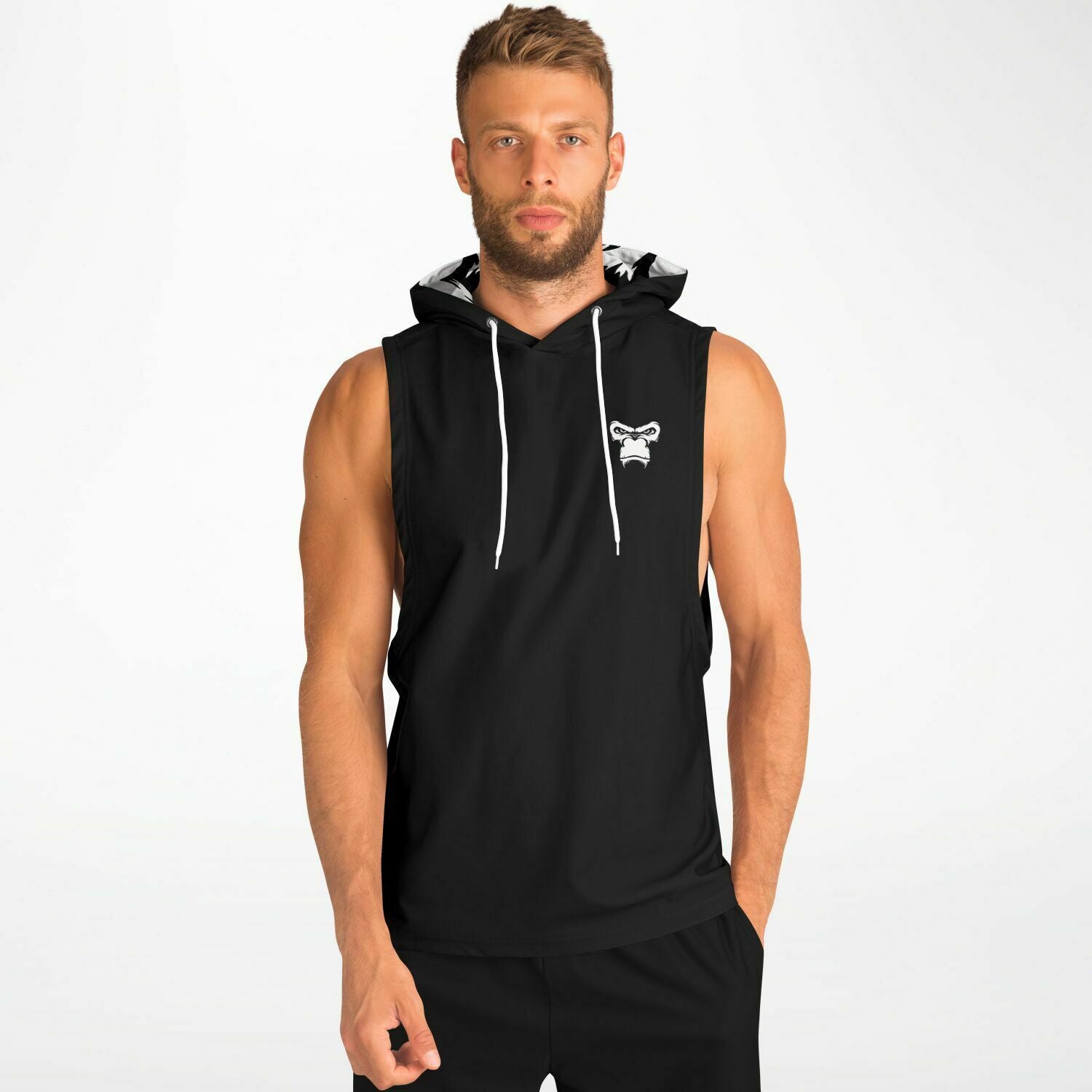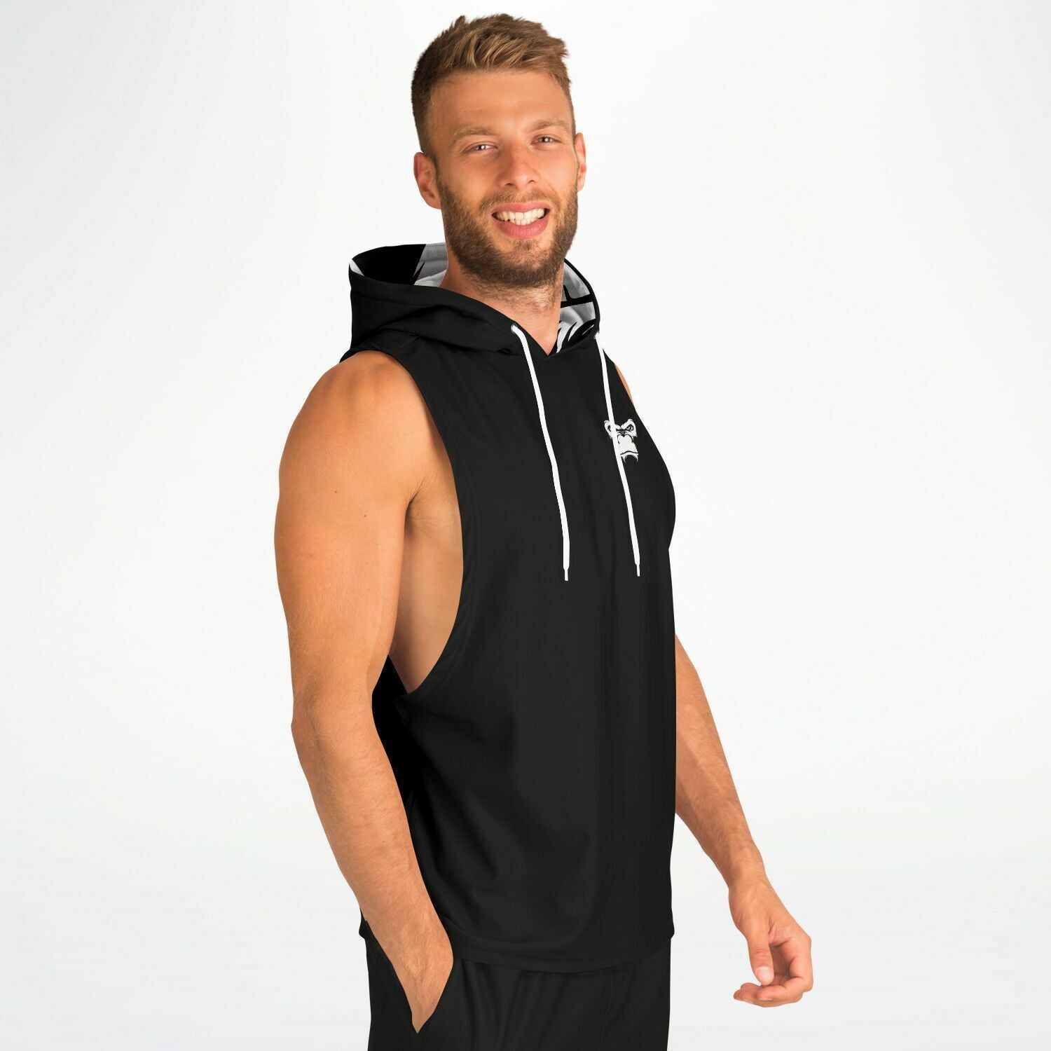 SB Mentality Fashion Drop Armhole Hoodie - Black & White